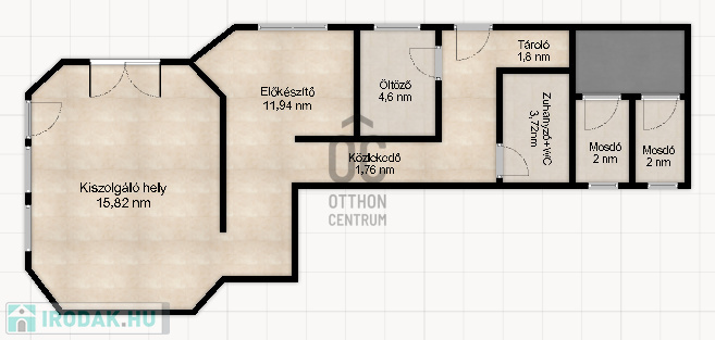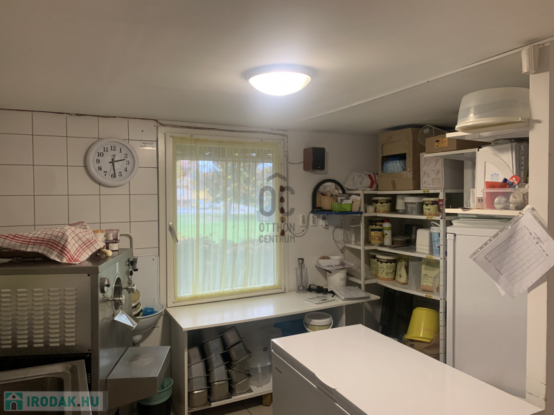 Az épület kialakítása nagyon jó, vendégek részére fedett terasz van kialakítva, az üzletbe belépve a kiszolgáló helyiségbe lépünk, innét jutunk el az előkészítőbe, hátsó részben a dolgozóknak kialakított öltöző, vizes blokk és tároló található, a vendégek pedig az udvarról tudják a vizes blokkot megközelíteni.