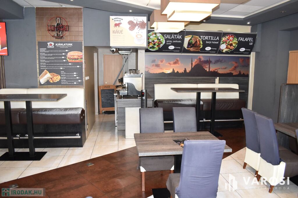 Eladásra kínálom Békéscsaba város belvárosi részén a Csaba Center szomszédságában található 1980-as években épült és 2015-ben teljesen felújított, tégla falazatú, 139 m2-es üzlethelységet. Az üzlethelység jelenleg étteremként van üzemeltetve, amelyhez egy 86 m2-es hangulatos terasz is tartozik. A felújítások során a teljes elektromos hálózat fejlesztése ( 3x50 A, ipari áram), a hidegburkolatok, a nyílászárók cseréje is megtörtént a legmodernebb fotocellás, alumínium nyílászárókra. Az üzletben továbbá ki lett alakítva egy mai kornak megfelelő, elegáns vizes blokk (férfi, női WC) is. Az üzlet kialakítása is kiváló, mivel a sétáló utcáról mindössze egy üvegfal választja el a 18 m2-es kiszolgáló részt és a közel 52 m2-es vendéglátó részt. Ezen egységek mögött lett kialakítva egy jól felszerelt 26 m2-es konyha, személyzeti öltöző, fürdőszoba, raktárhelységek, előkészítő és hűtők. Az üzlet fűtéséről egy Westend gázkazán és padlófűtés gondoskodik.