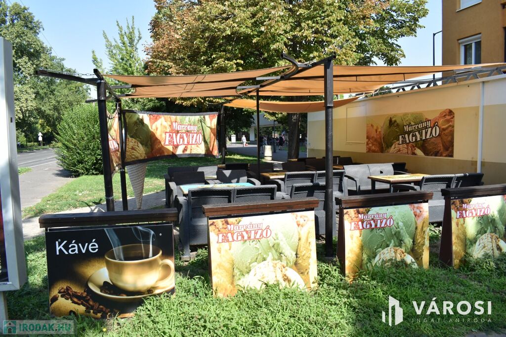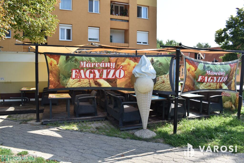 Eladásra kínálom Békéscsaba város Lencsési lakótelep részén ezt a 30 m2-es üzlethelységet. Az üzlethelység évek óta és jelenleg is fagylaltozóként van üzemeltetve. A Békéscsabai emberek nagyon szeretik, mivel tudják, hogy a Márvány cukrászdák a minőséget képviselik. A fagylaltozóhoz tartozik továbbá egy 20 m2-es iroda és raktárhelység is, amely a mellette lévő lépcsőház földszinti részén található. Az üzlethez tartozik továbbá egy 82 m2-es hangulatos terasz rész is, amely akár rendezvények lebonyolítására is kiválóan alkalmas. Az üzlet teljes elektromos hálózat fejlesztése ( 3x32 A ). A fagylaltozó mellett szinte minden megtalálható és a környéken lakók nagyon szeretik.