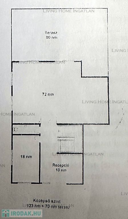 Földszint: A 120 nm-es földszinten található egy teraszkapcsolatos nappali/tárgyaló, fogadópult az előtérben, mellékhelyiség, gépészeti helyiség, kisebb iroda/szoba.