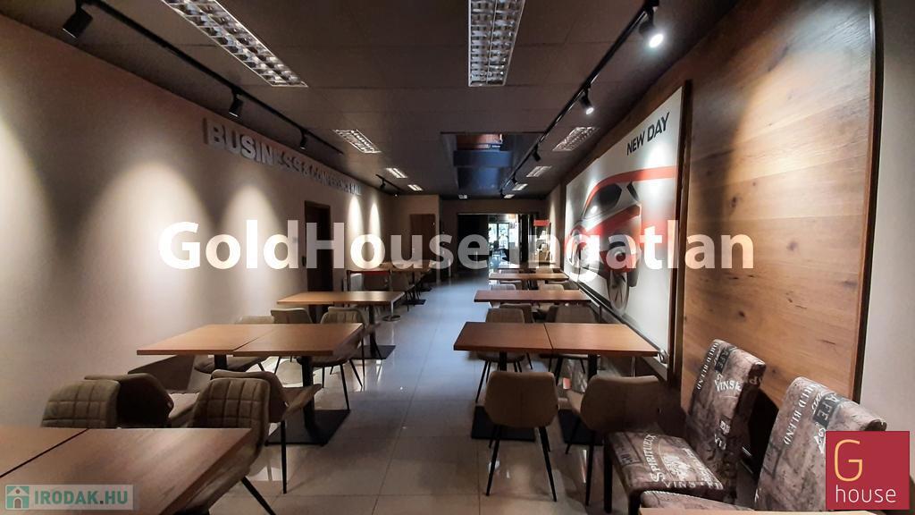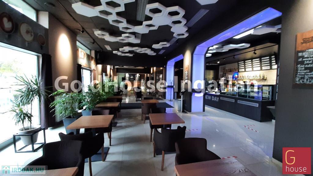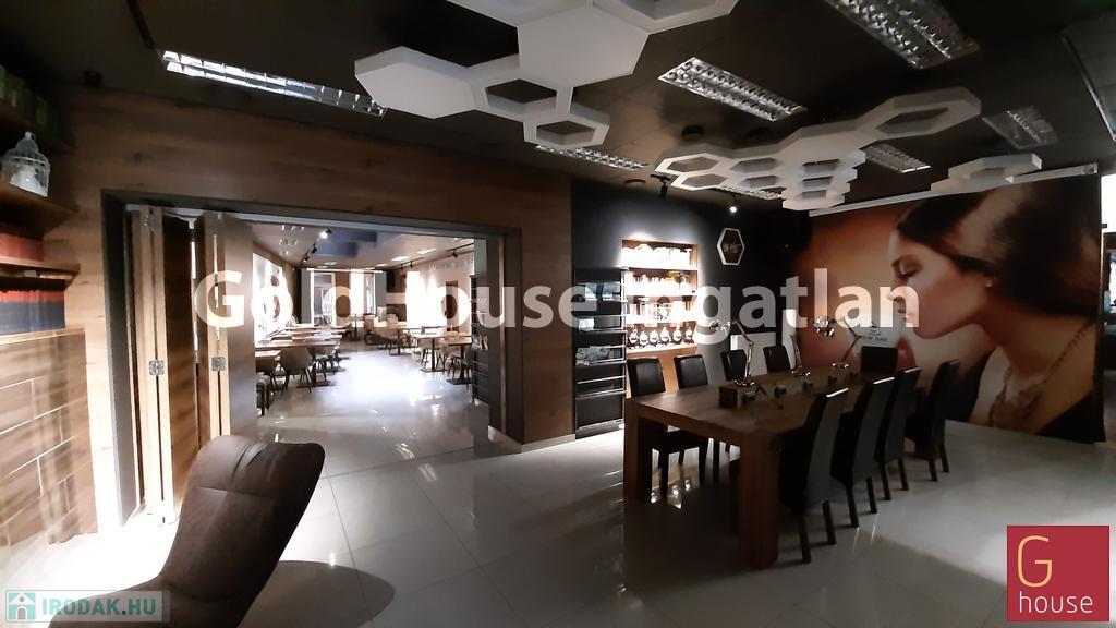 Bemutatóterem, cégközpont, rendezvényterem, étterem, áruház, autószalon vagy akár szépségszalon, orvosi központ létesítésére kiváló! Nívós kereskedőháznak, ruha és egyéb márkaboltnak, közért -delikátesz üzletnek is alkalmas. Jelenleg a fele terület exkluzív kávézó-rendezvényterem, de eltérő tevékenység esetén a bárpult könnyen elbontható. Befektetésnek is kiváló!
