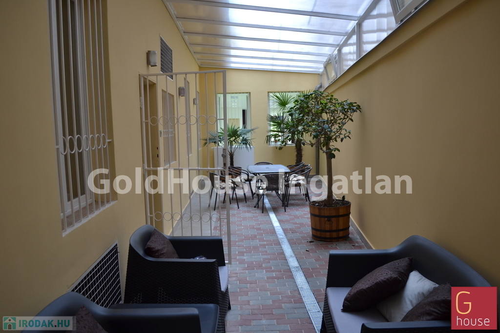 Tágas vendégtér, különtermek, könyvtárszoba látványkandallóval. Vendéglátás esetén a terület tovább bővíthető. Teraszozható. Saját zárt 45 nm-es privát terasszal és udvari bejárattal is rendelkezik.