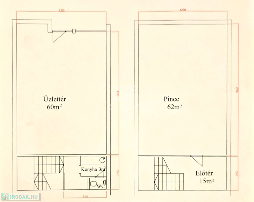 Földszint (60 m²): Utcafronti üzlettér, teakonyha, mosdó
