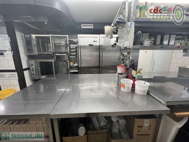 EGYEDI LEHETŐSÉG! TERMELŐKONYHA ÉS ÉTTEREM TULAJDONJOGA ELADÓ! VII. kerületben kínáljuk megvételre ezt a földszinti, utcai nézetű, üvegportálos, 214 m2-es, két szintes, 2 bejáratos, cirkófűtéses, világos, 2017-ben teljes körűen felújított üzlethelyiséget. Az ingatlan 2 szintes, szintenként 107 m2-es, vasbeton szerkezetű monolit vendégfödémmel lett létrehozva. A földszint 1000 adagos termelőkonyha és kiszolgáló helyiségei. Az emelet klimatizált, kb. 40 fős étterem, iroda, gépház. Ipari áram 3x50A, ipari gáz 16 m3-es gázóra és külön vízóra, HikVison kamerarendszer, riasztórendszer. A szagelszívást 6 m2 elszívóernyő biztosítja, a tető fölé kivezetett elszívó rendszerrel, légtechnikai rendszerrel az emeleti gépházban. Fűthető is a levegő. A légtechnika az ár részét képezi. Az étteremben lévő ingóságok, eszközök és berendezések, konyhai felszerelés igény esetén külön megállapodással megvásárolhatók. Az ingatlan értékesítése fordított ÁFÁ-val könnyedén kivitelezhető. Irányár: 189.900.000 Ft.