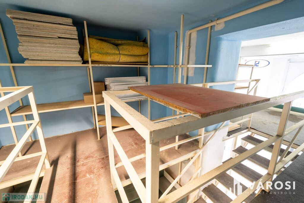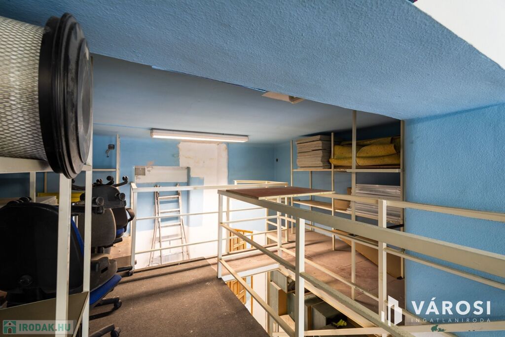 Az alapterületet (43 m2), amit egy fém szerkezetű, masszív álló galériával növelték meg, ahol további 27 m2 hely jut irodának, vagy éppen raktározásra. A galéria utca felöli részén üvegfal biztosítja a földszintre rálátást és a természetes fényt.