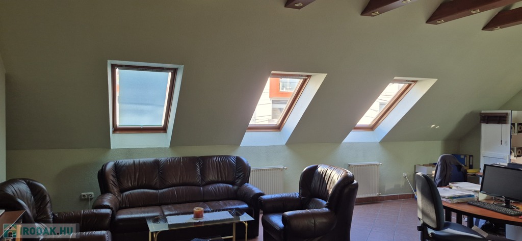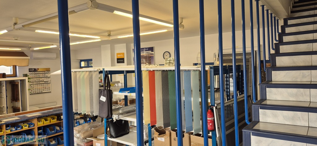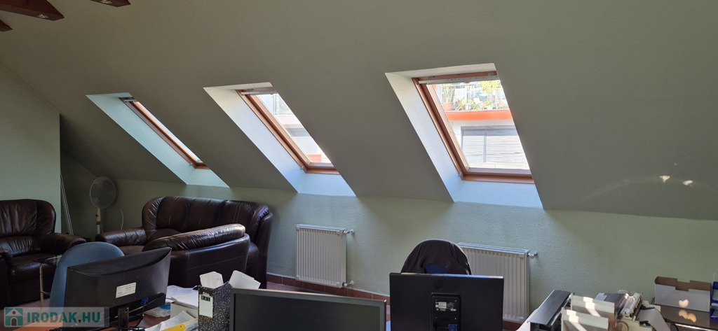 A földszinten tágas, 50 m²-es eladótér található, irodahelyiségekkel, raktárral, valamint egy 114 m²-es, világos, sokablakos üzemi résszel, két udvari bejárattal. Innen lépcső vezet a tetőtérbe, ahol szintén 114 m²-es üzemi terület, továbbá tárgyaló, iroda, ebédlő és fürdőszoba kapott helyet. A tetőtéri irodaszintről külön lépcső vezet vissza az eladótérbe, így a belső közlekedés rugalmasan használható.