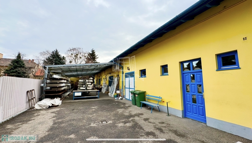 • Épület: Az utcafronti, földszintes épület oldalhatáron helyezkedik el, jelenleg árnyékolástechnikai vállalkozás működik benne. Az udvar hátsó része (körülbelül a telek fele) acélszerkezetű, polikarbonát héjalású tetővel fedett, amely ideális raktározási célokra.