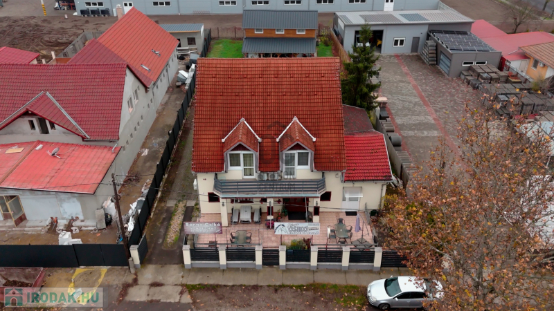 Debrecen keleti részén, forgalmas főút mellett található kereskedelmi tevékenységre alkalmas,étterem szállás és lakó ingatlan ingatlan eladó, amely társasházi ingatlanként két helyrajzi számmal rendelkezik, az alsó szint üzlethelyiség megnevezésű, az emeleti szint lakóingatlan megnevezésű. Társasházi alapító okirat . A telek 1100 nm összközműves , az udvar hátsó részén található míg egy két szintes első és hátsó terasszal rendelkező lakó ingatlan.