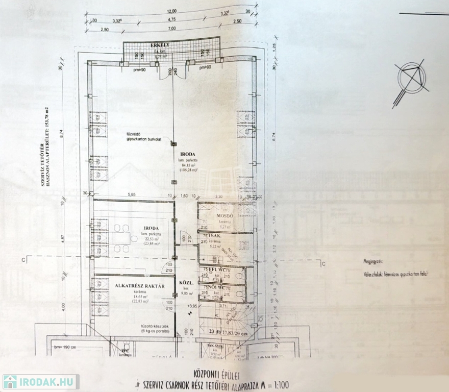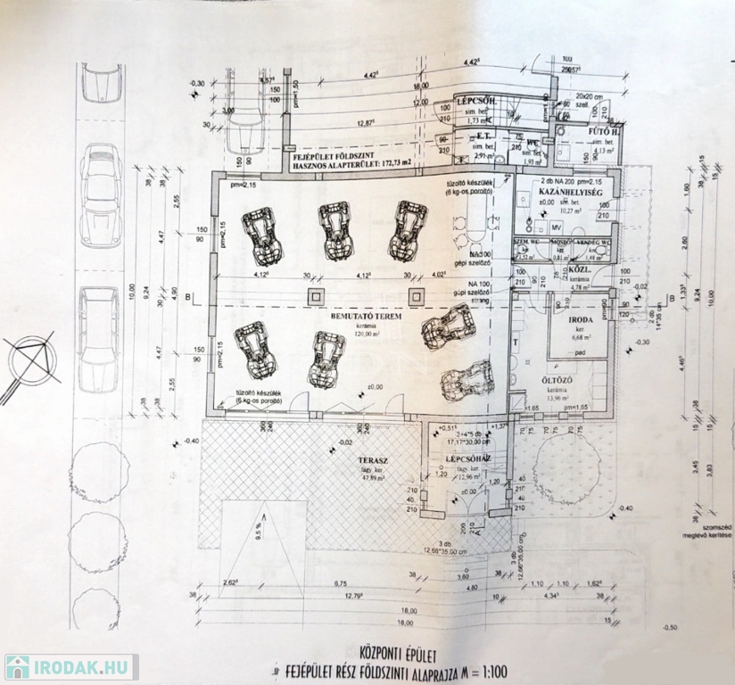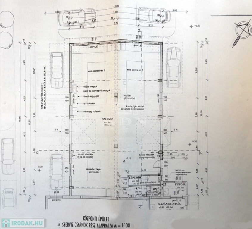 Itt is található további alkatrészraktár/tárolóhelyiség/irattár stb. és a kiszolgáló helyiségek, így a műszaki és adminisztratív területek jól elkülöníthetők.