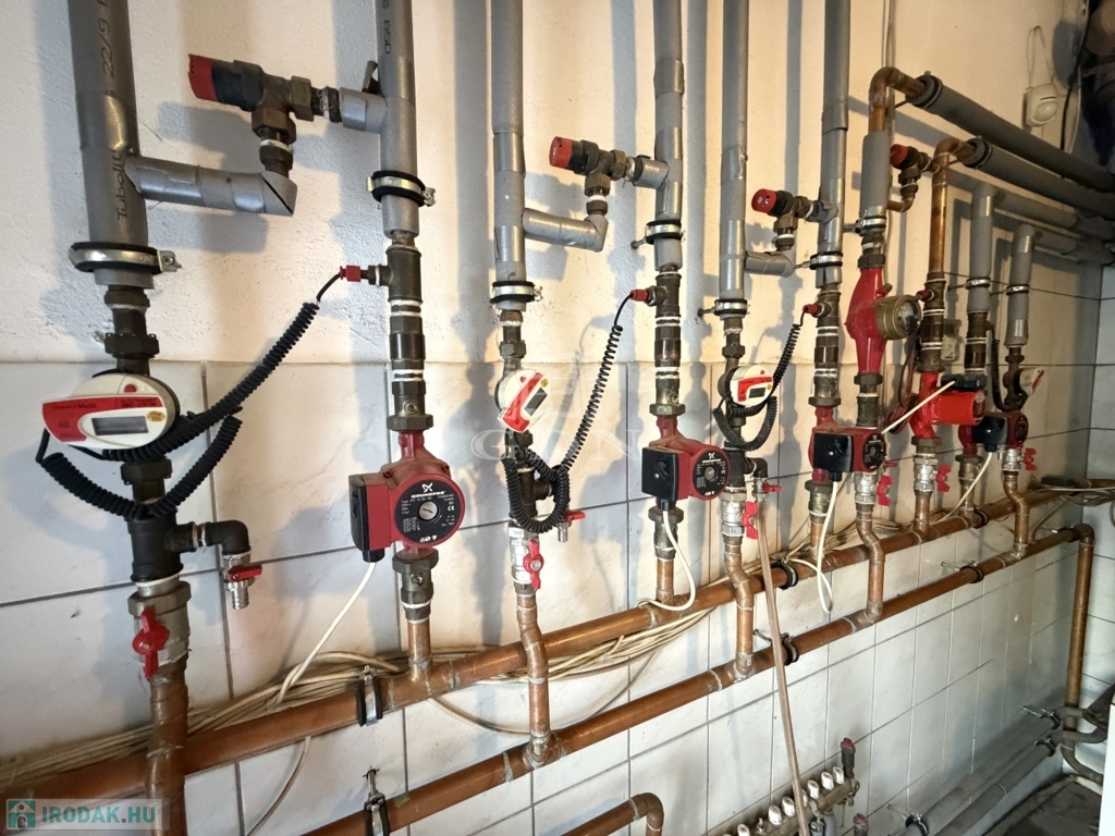 Az ingatlan víz- és fűtésrendszere főmérőkkel és almérőkkel is rendelkezik, így az egyes épületrészek rezsifogyasztása külön-külön mérhető és elszámolható. A fűtési rendszer két kazánnal működik, amelyek közül az egyik tartalék kazánként biztosítja az üzembiztonságot. A főépület szervizcsarnokában ezen felül külön gázzal működő hőlégbefúvó is felszerelésre került, amely gyors és hatékony felfűtést tesz lehetővé nagy belmagasság mellett is.