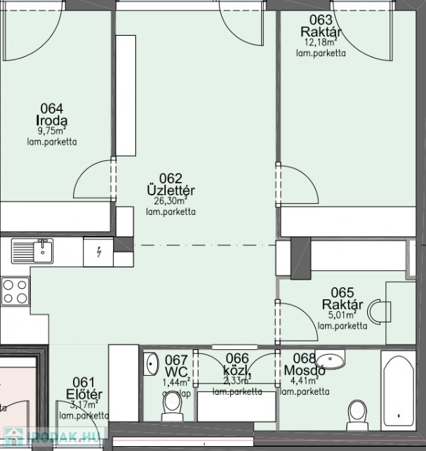 - Helyiségenként változó darabszámú, dugalj/gyenge áram kiállás, mennyezeti lámpatestek,