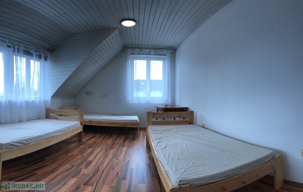 Győr-Likócs természet közeli, családi házas nyugodt övezetében, AUDI gyártól, Ipari Parktól, Belvárostól, M1-es autópályától pár perces autótávolságra, 2.100 m2-es összközműves telken lévő 2 szintes, jó állapotú épületben, összesen 9 db külön bejárattal rendelkező (10 m2; 14 m2; 17 m2, 19 m2, 20 m2 nagyságú) hálószobákból, 3 db fürdőszoba + WC-ből, méretes nappaliból/társalgóból/közösségi térből (54 m2), különálló konyhából, méretes étkezőből (17 m2), különálló kamrából, 35 m2-es TERASZBÓL, különálló pincetárolóból álló, valamint több KLÍMÁVAL felszerelt, 336 m2 hasznos alapterületű panzió/családi ház eladó.