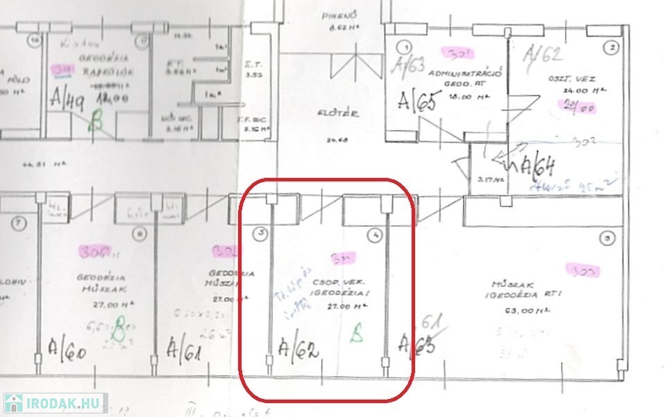 15m2, 26m2, 53m2 és egy kétlégteres 42m2-es irodák állnak rendelkezésre, amelyek irodaházban találhatóak. Liftes épület, de nem akadálymentesített. Parkolás közterületen megoldható. Az irodákhoz vásárolható 1 db 2m2 irattároló, ami a folyósóról közelíthető meg, illetve 2db 10m2 pince tároló. Ezek külön megegyezés részét képezik.
