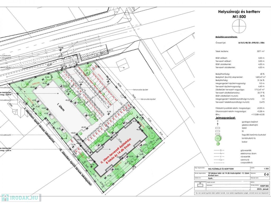 A kiváló tájolású, napfényes házban 8 db lakás és 14 db iroda kerü kialakításra.A földszinti ingatlanok kertkapcsolattal és terasszal, az emeleti ingatlanok erkéllyel rendelkeznek. A ház egy 5071 m2-es telken épül, így rengeteg zöld felület marad a szabadidő eltöltéséhez.