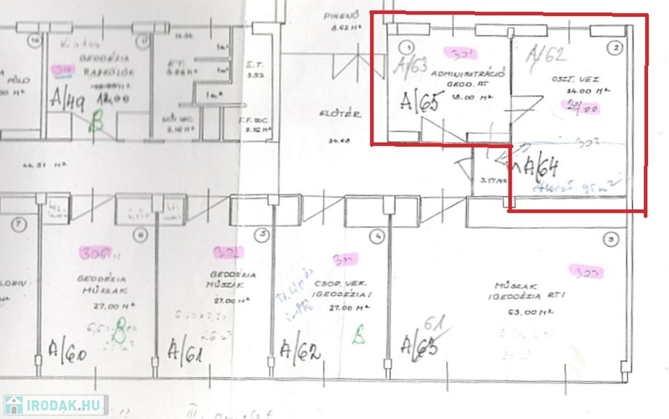 15m2, 26m2, 53m2 és egy kétlégteres 42m2-es irodák állnak rendelkezésre, amelyek irodaházban találhatóak. Liftes épület, de nem akadálymentesített. Parkolás közterületen megoldható. Az irodákhoz vásárolható 1 db 2m2 irattároló, ami a folyósóról közelíthető meg, illetve 2db 10m2 pince tároló. Ezek külön megegyezés részét képezik.