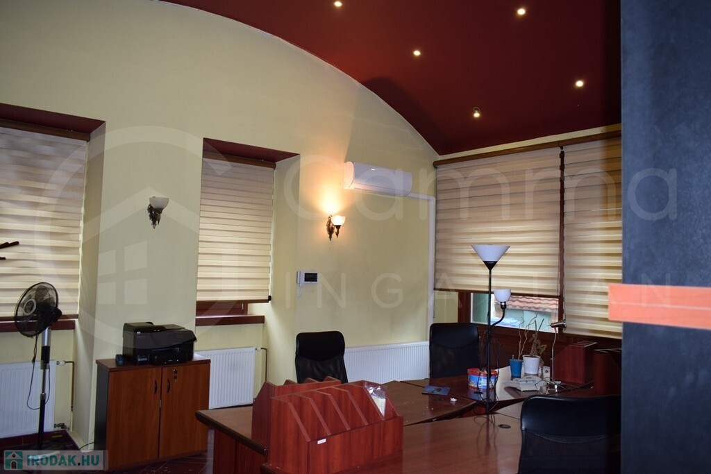 A Miskolc belvárosában elhelyezkedő, 220 m²-es, téglaépítésű irodaház egy tágas, 866 m²-es telken fekszik, amely kiváló lehetőséget nyújt a jövőbeli bővítésre. Az egyedi, eltolt szintes belső tér egy 160 m²-es földszinti részből és egy 60 m²-es emeleti szintből áll, ahol előtér, hat irodahelyiség, mosdó és WC került kialakításra. Az épület fűtését gázkazán biztosítja radiátoros hőleadókkal. A falak festettek, a padlózat járólappal burkolt. A nyílászárók fa tokozású hőszigeteltek.