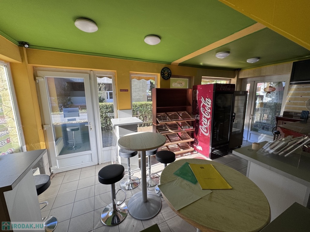 Korábban pékségként, presszóként és lottózóként üzemelt, 1,5 éve zárt be. Az üzlethelyiség azonnal használatba vehető, a teljes berendezés – pult, kávégép, hűtők, bútorok – a vételár részét képezik.