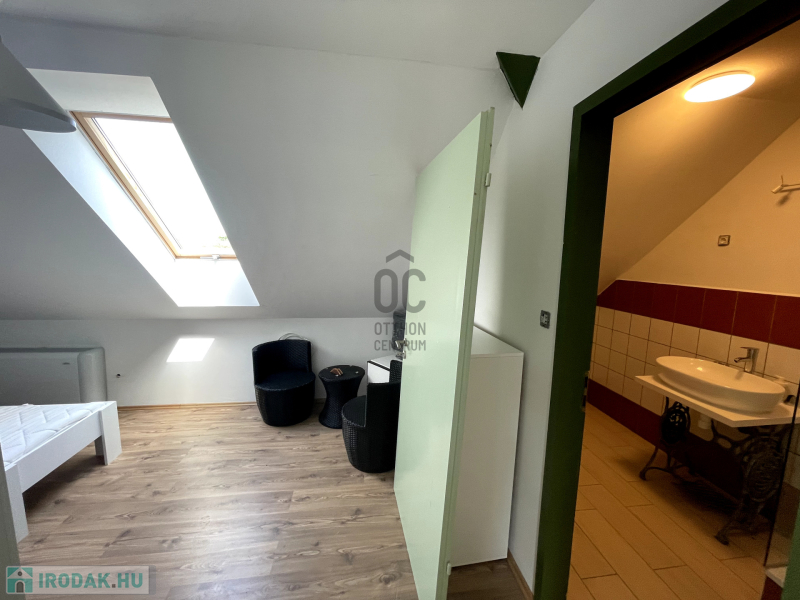 -Az épület alatt panzió található, 15 különálló szobával, mindegyik saját fürdőszobával