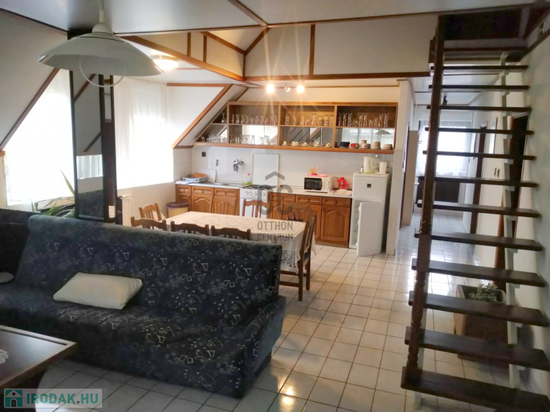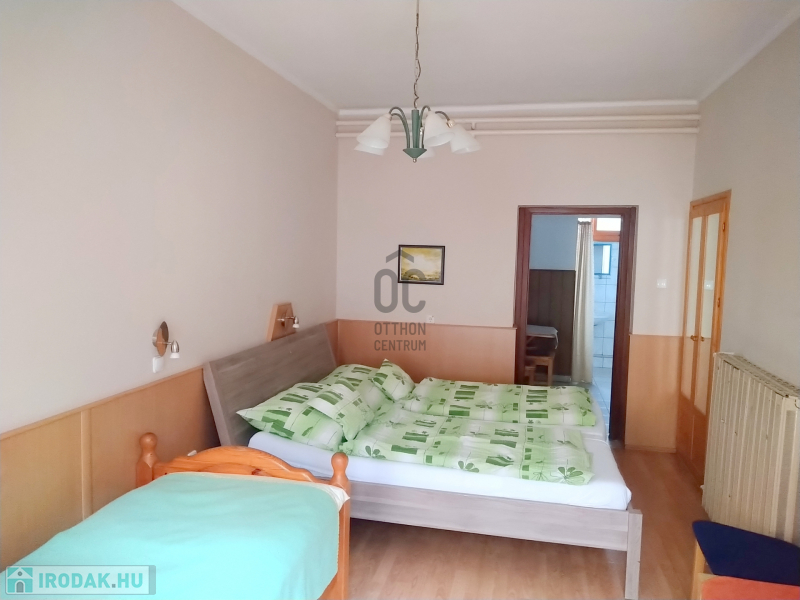 Az emeleti részen található szobákat a hozzá tartozó konyhával, étkezővel, nappalival állandó vendégkör használja jelenleg és lehetőség szerint az új tulajdonosnak is biztos bevételi forrást jelenthet.