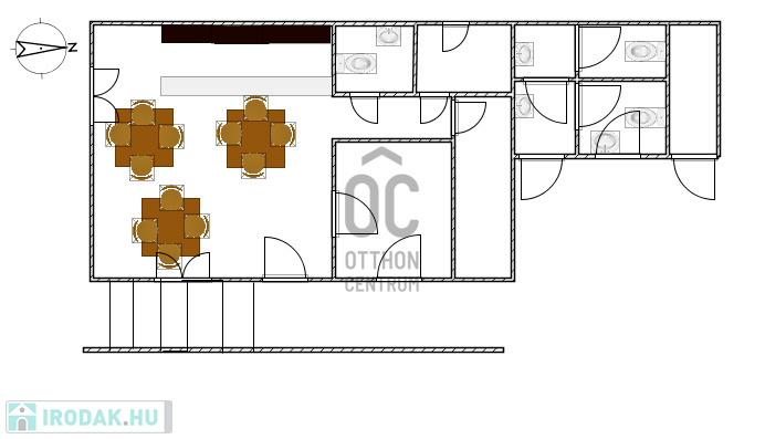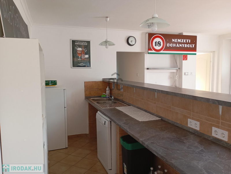A kiszolgálótérhez iroda, saját mosdó, raktár és a dohánybolti rész tartozik.