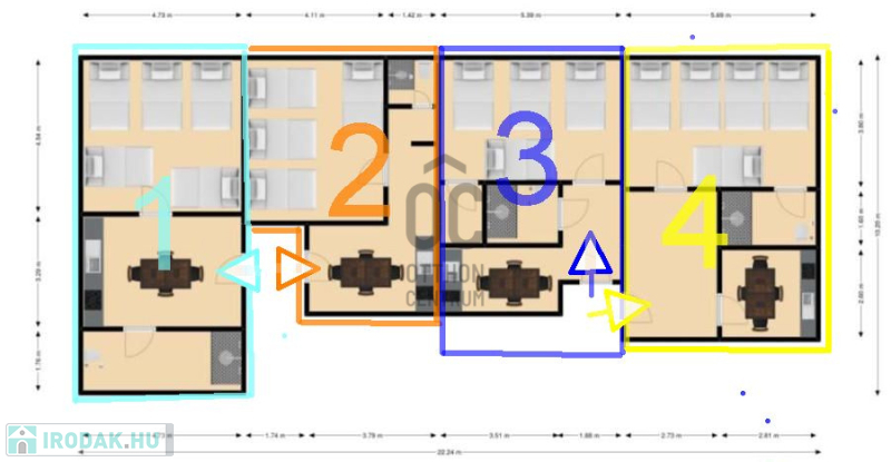 A vételárban a meglévő ügyfél kör ami 11 éve kialakult szintén a vételár tárgyát képezi és vele együtt a teljes üzemeltetéséhez tartozó : / Külön bejáratú lakások , amiből van 6 db apartman , 4 db 60 m2 -es= 240 + 25 + 35 m2 mind összesen 300 m2 / . összkomfortos lakások . a teljes berendezésekkel és szolgáltatókkal együtt .