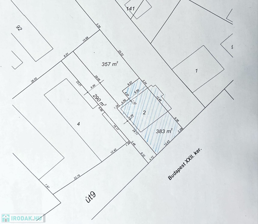 Az ingatlanhoz tartozó saját kizárólagos használatú telekrész nagysága 383 m², amely magába foglalja az üzlet előtt lévő saját parkolóhelyeket is.