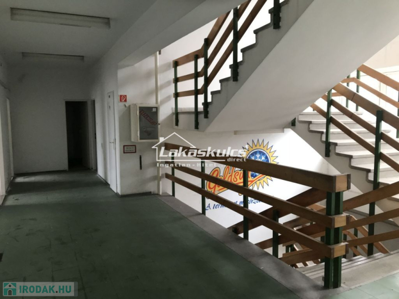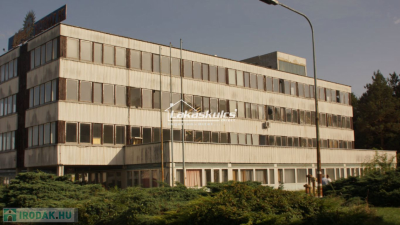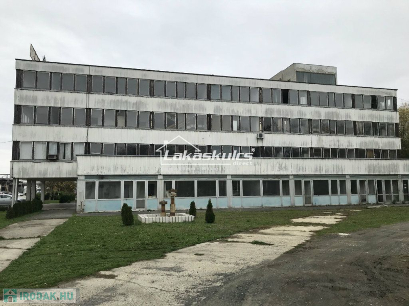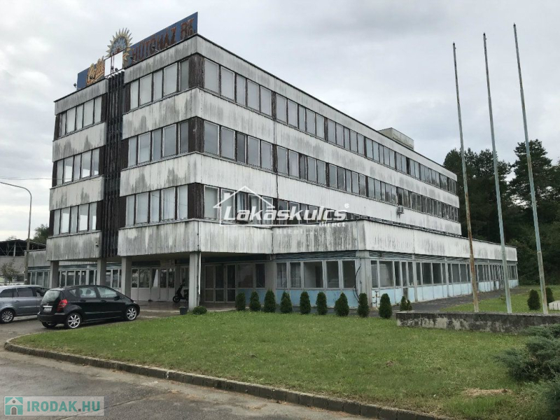 Zalaegerszegen 9 hektáros ipari területen belül levő 1.748 m2-es irodaépület eladó. A telekkönyvi nyilvántartásban társasházi albetétként szerepel. Az ipari terület bekerített, a háromemeletes irodaház portán keresztül közelíthető meg.