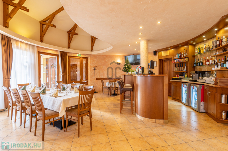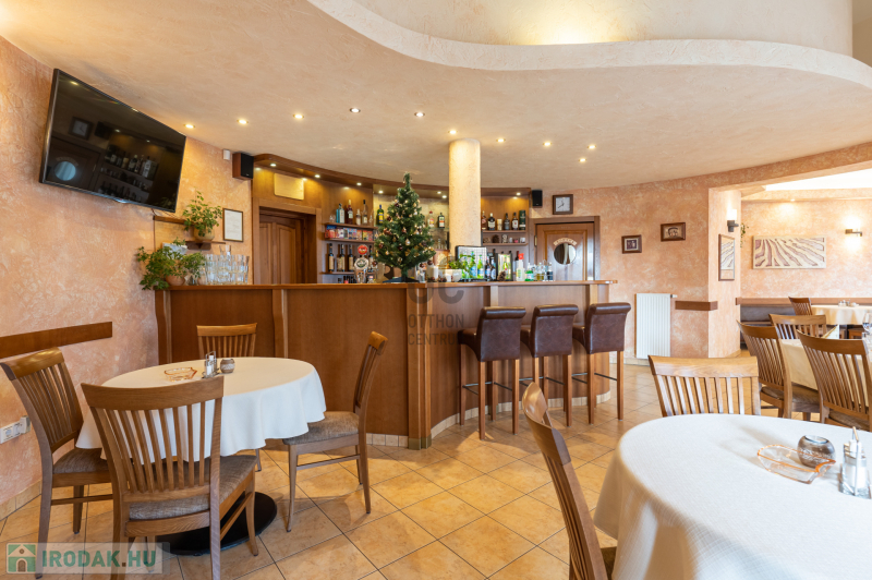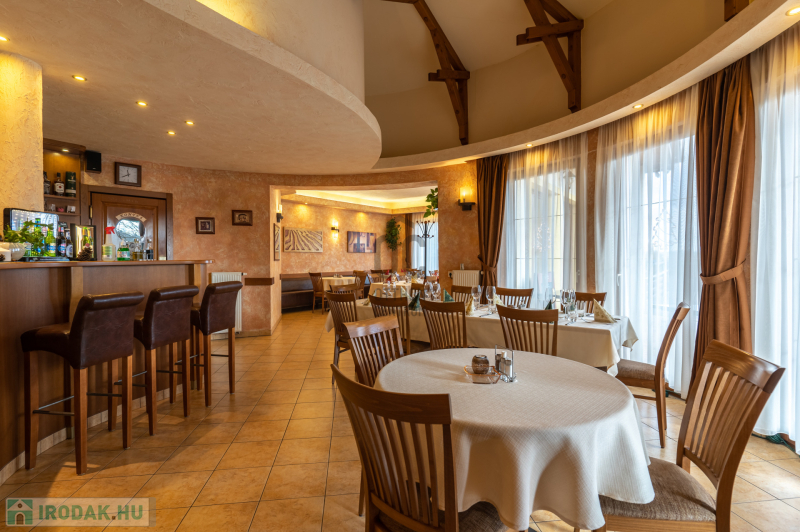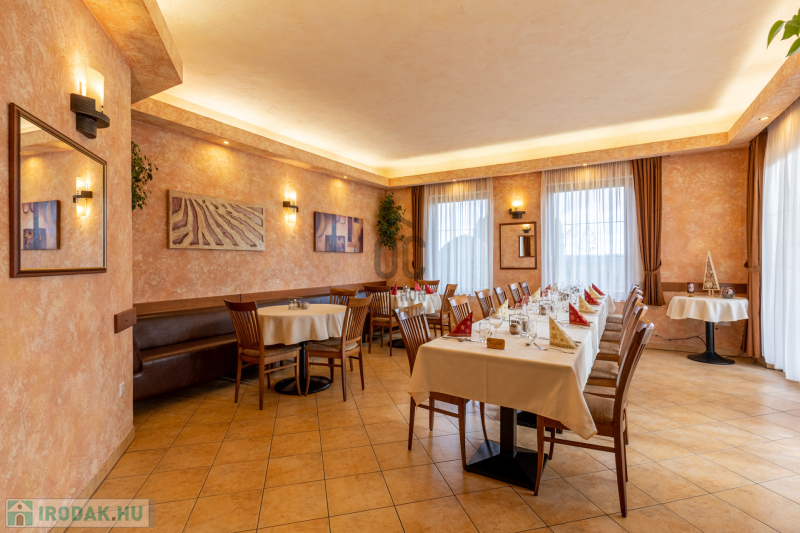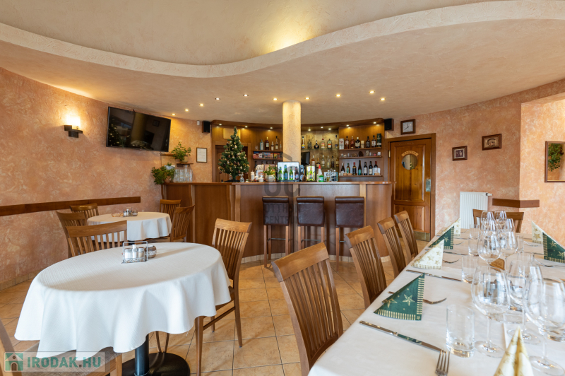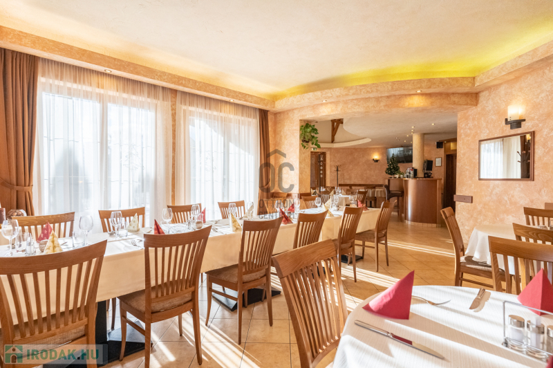 Az ingatlan földszinti részén szakmailag elismert, igényes 50-60 fő befogadására alkalmas étterem mű-