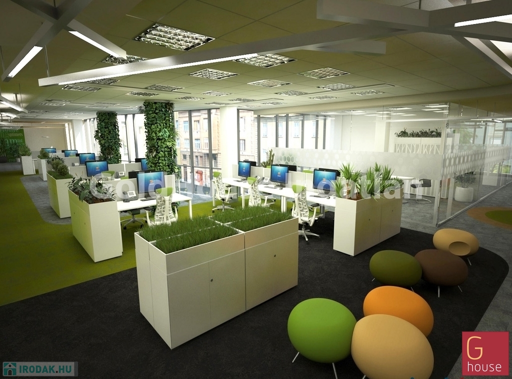 A modern irodaterületek nagyon világosak, optimális mélységűek, amelyek nagyobb egybefüggő irodaigények kiszolgálásra is alkalmasak.