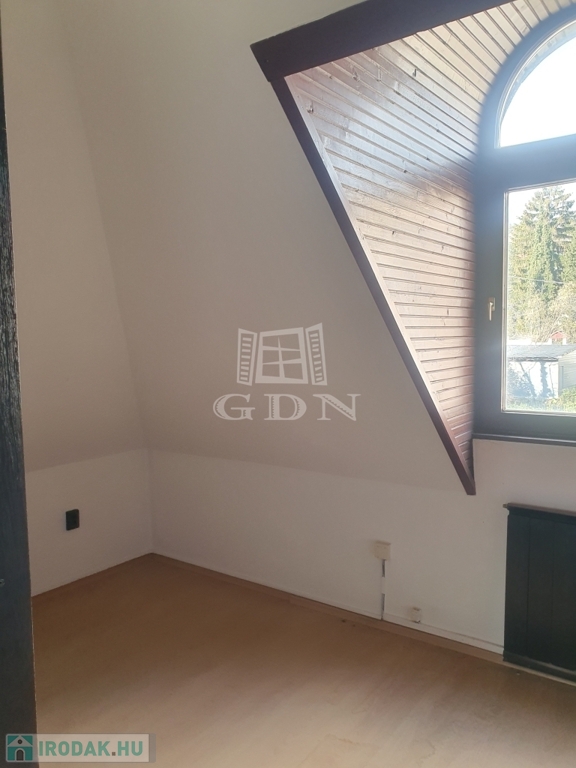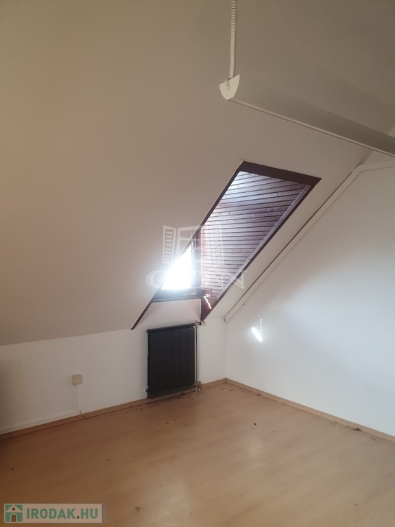 A bérbe vehető iroda az épület tetőterében található, bruttó alapterülete közel 100 nm, hasznos alapterülete megközelítőleg 70 nm, felosztását tekintve négy irodahelyiség, mellékhelyiség, előtér és teakonyha kialakítású. Fűtése és meleg vízellátása gáz-cirko rendszerrel megoldott.