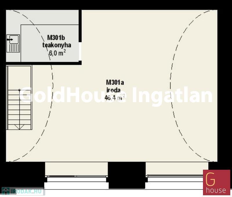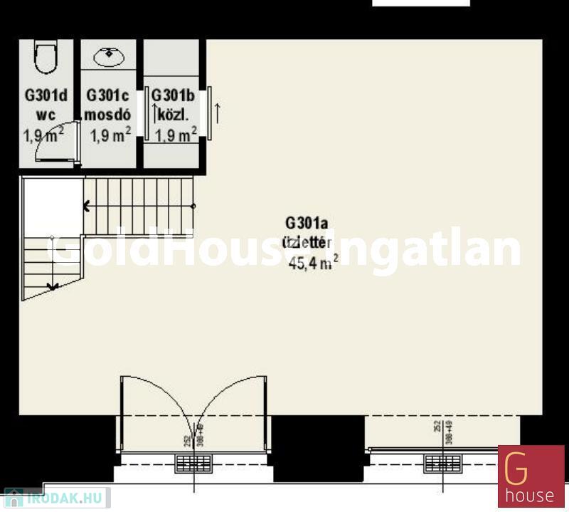 Elosztása: földszint 51 nm, galéria 52 nm. A földszinten üzlettér és mosdó, a galérián iroda és teakonyha található. Kirakatos, a galéria pedig utcai ablakokkal rendelkezik.