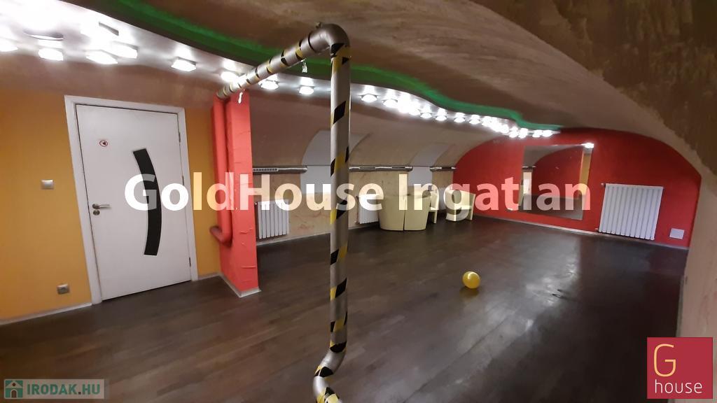 Fszt: 80 nm-es, két helyiséges, mosdó és kisebb iroda is van itt. A galéria 70 nm-es, a pince 70 nm-es, két terme van, ott helyezkedik el a zuhanyzós öltöző is. Cirkó, légkondi, automata főbejárat valamint udvari személyzeti bejárat.