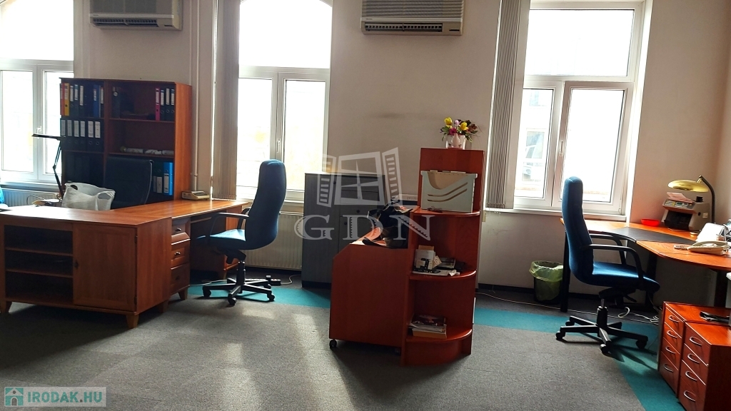 A modern, jó állapotú, klímával ellátott bérlemény, az irodaépület második emeletén helyezkedik el, melyet egy zárt folyosóról,és egy 8 nm-es közös területen áthaladva közelíthetünk meg.Két helyiségből áll, egy cc: 50 nm-es irodából és egy 30 nm-es tárgyalóból.
