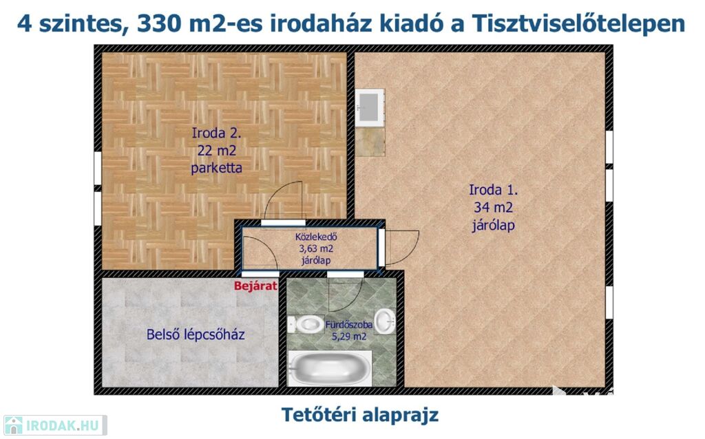 NÉGY SZINTES, 330 M2-ES ÖNÁLLÓ IRODAHÁZ KIADÓ A TISZTVISELŐTELEPEN