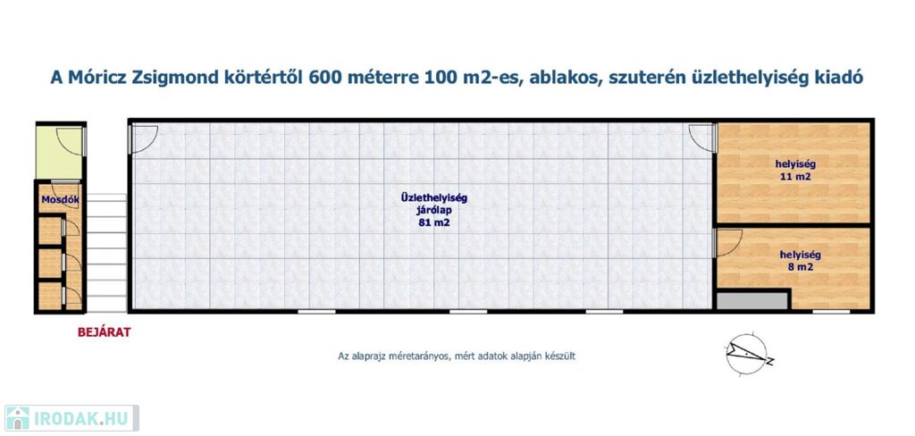 A MÓRICZ ZSIGMOND KÖRTÉRTŐL 600 M-RE 100 M2-ES SZUTERÉN ÜZLET KIADÓ