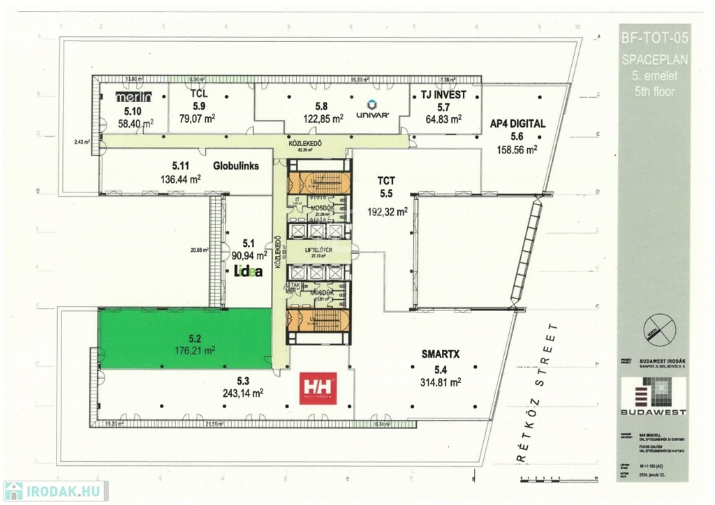 Nettó irodaterület: 176 m2