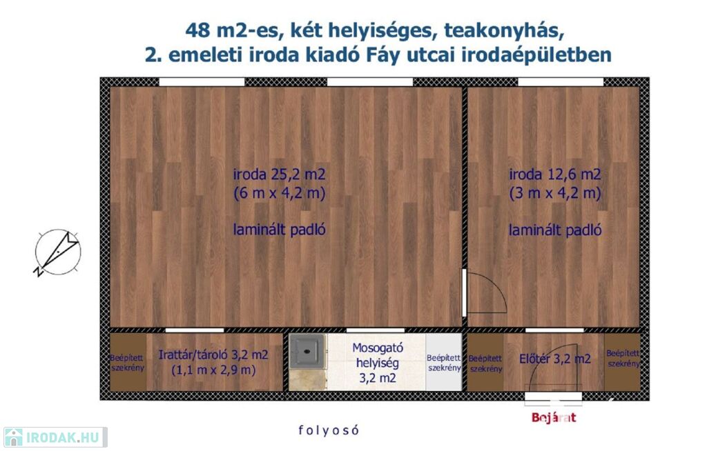 48 M2-ES, KÉT HELYISÉGES, TEAKONYHÁS, 2. EMELETI IRODA KIADÓ FÁY UTCAI IRODAÉPÜLETBEN