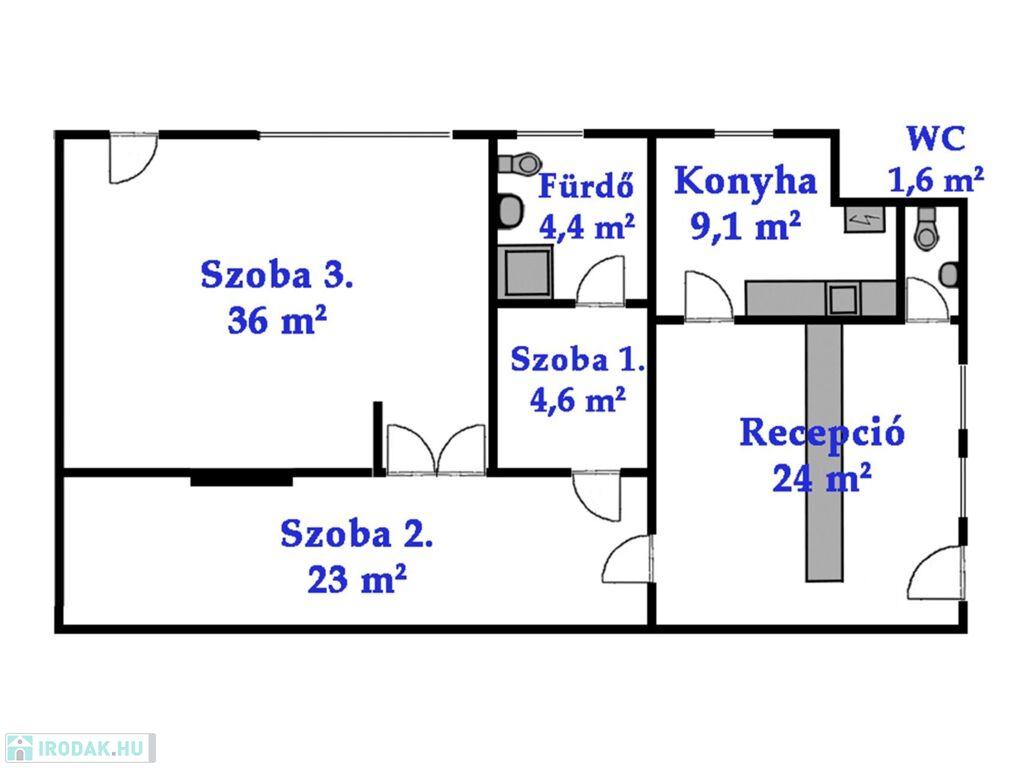 Mivel a bérlemény a szomszédos csarnokhoz tartozó nagyobb iroda része volt, a 2. szobából több lezárt ajtó nyílik a bérleményen kívülre, melyek azonban használaton kívül vannak, így a helyiség berendezhetőségét nem befolyásolják.