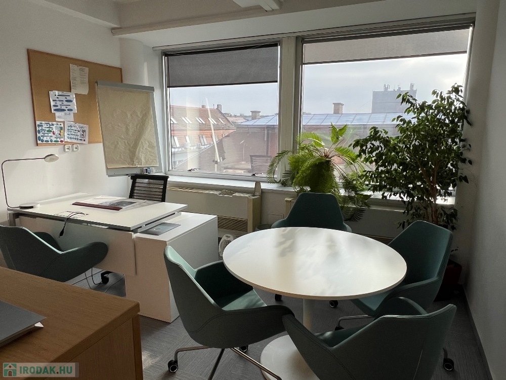 Győr-Belvárosának rendkívül kedvelt részén, Baross úttól, Széchenyi tértől pár másodperces sétatávolságra, rendezett, tiszta, liftes irodaház 5. emeletén, 157 m2-es tárgyalóból és 3 db méretes irodából álló, (17 m2, 26 m2, 29 m2) továbbá saját teakonyhával és szociális egységgel felszerelt, nagy üvegportálos, összesen 306 m2-es bútorozatlan iroda kiadó.