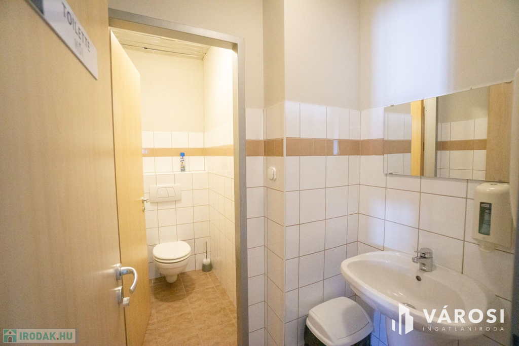 Az emeleti szinten, a folyosó elején található a közös használatú vizesblokk, külön női és férfi mosdó-wc, valamint egy kis ügyfélváró.