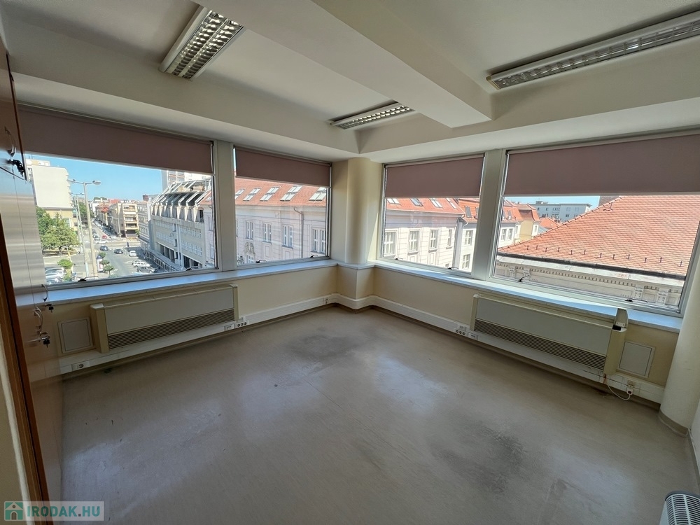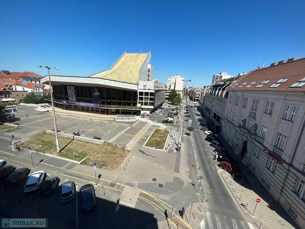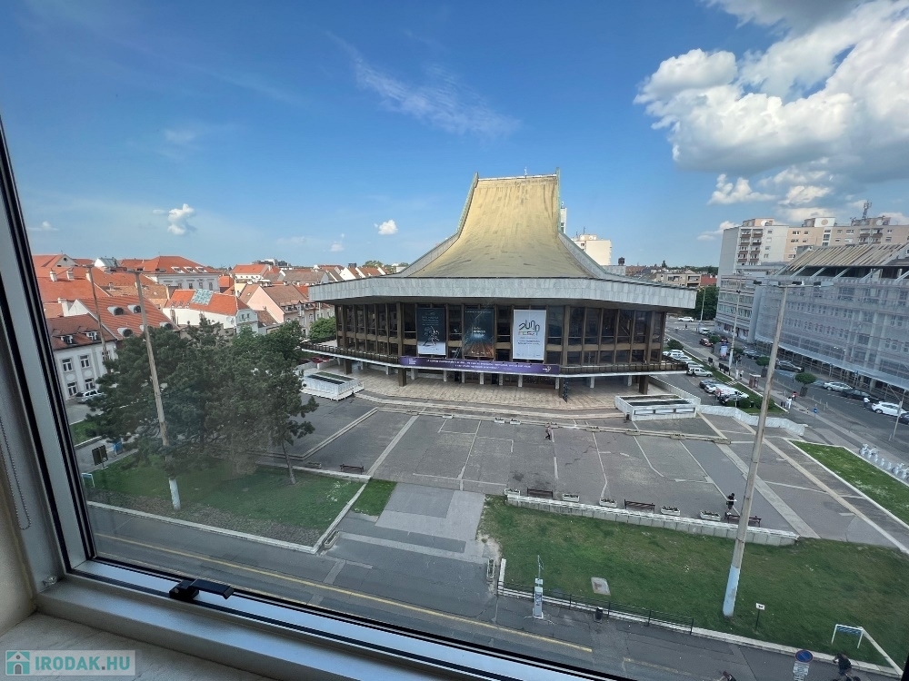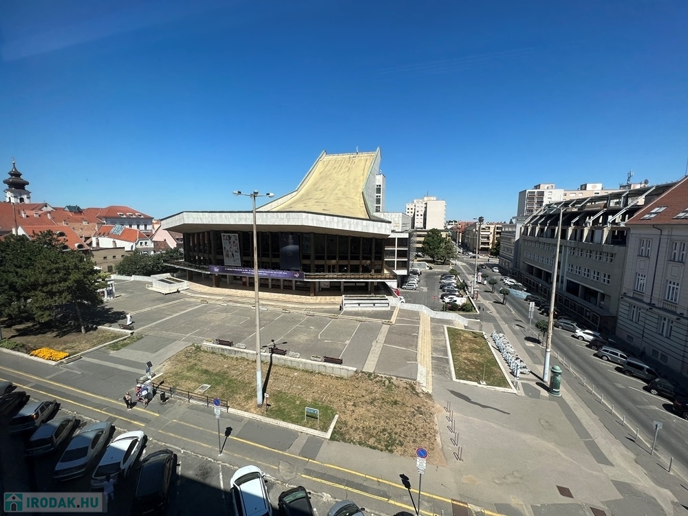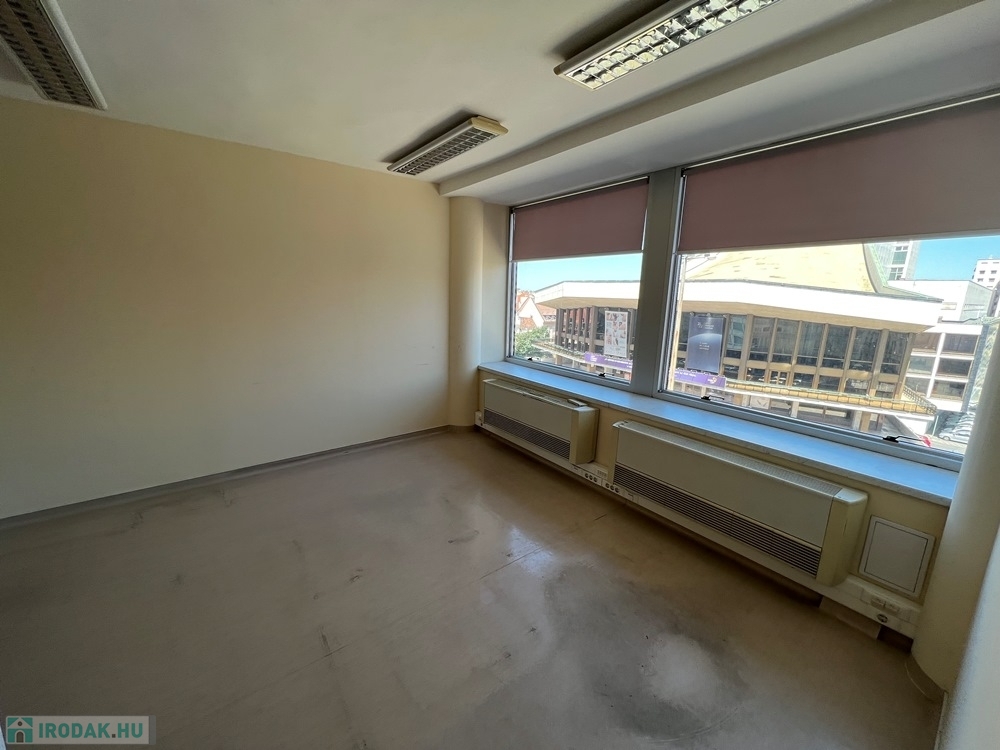 Győr-Belvárosának szívében, Baross úttól, Széchenyi tértől pár másodperces sétatávolságra, rendezett, tiszta irodaház 4. emeletén, nagy üvegfelülettel rendelkező, 18 m2-es bútorozatlan iroda, NEMZETI SZÍNHÁZRA való kilátással, közös tárgyaló használatának lehetőségével kiadó.