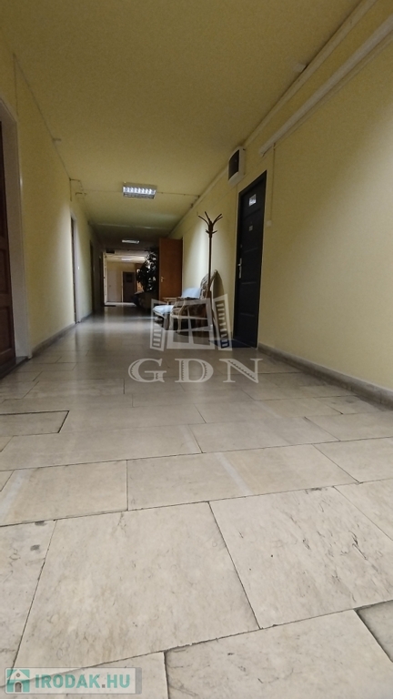 Ez az iroda a folyósó végén található, átmenő forgalomtól mentes.