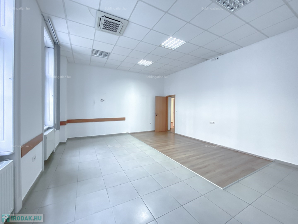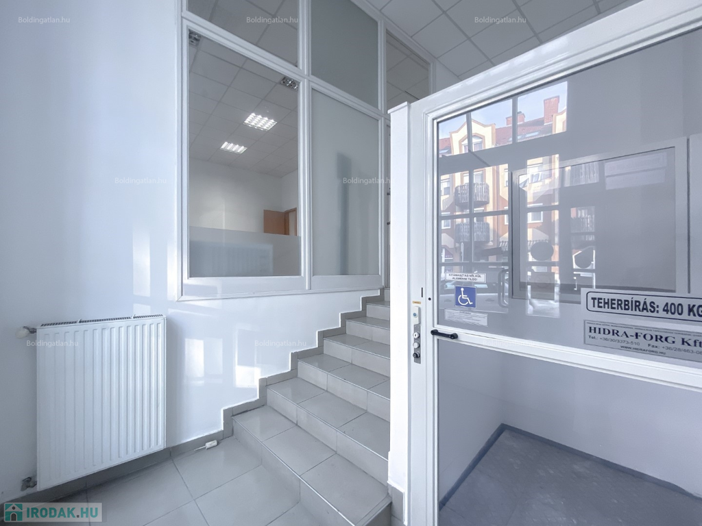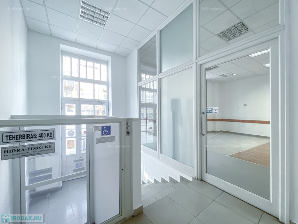 Kaposváron a belvárosban, a Fő utcában, kifejezetten frekventált helyen lévő 124,88 m2-es, akár azonnal is birtokba vehető 2 szintes irodaház, földszinten lévő, utcafronttal is rendelkező helyiségei hosszú távra kiadó. Az ingatlan földszintjén klimatizált ügyféltér, előtér mozgássérültek részére kialakított lifttel, 3 iroda, szerverszoba, wc-kézmosó, közlekedő, továbbá teakonyha, wc-kézmosó és udvari bejárattal rendelkező lépcsőházzal találhatóak, továbbá a lépcsőházból nyílik még a ház alatti - akár iratok tárolására alkalmas - pince is. Az épület fűtése Viessmann gázkazánnal megoldott, az irodák légkondicionálóval felszereltek, a zárt udvarban akár 15 személyautó parkolására is van lehetőség. Bérleti díj: 350.000.- Ft/hó + ÁFA + rezsi + 2 havi kaució