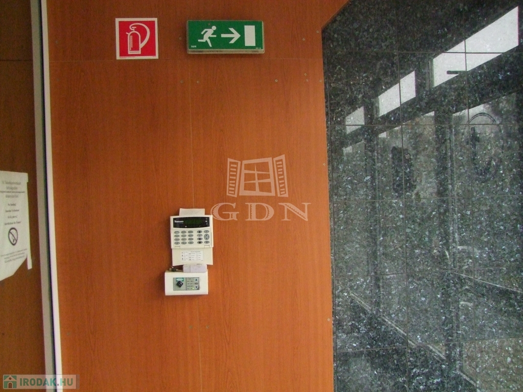 A külön bejáratú emeleti részen irodák, konyha és szociális helyiségek vannak kialakítva. Alapterülete 190 m2, riasztóval és klímával felszerelt.