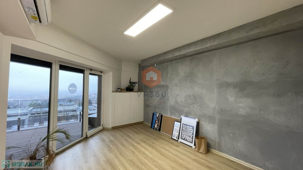 A légkondicionált iroda helyiség akár lakásnak is kiadható, rendkívül tágas és napfényes, déli fekvésének köszönhetően.