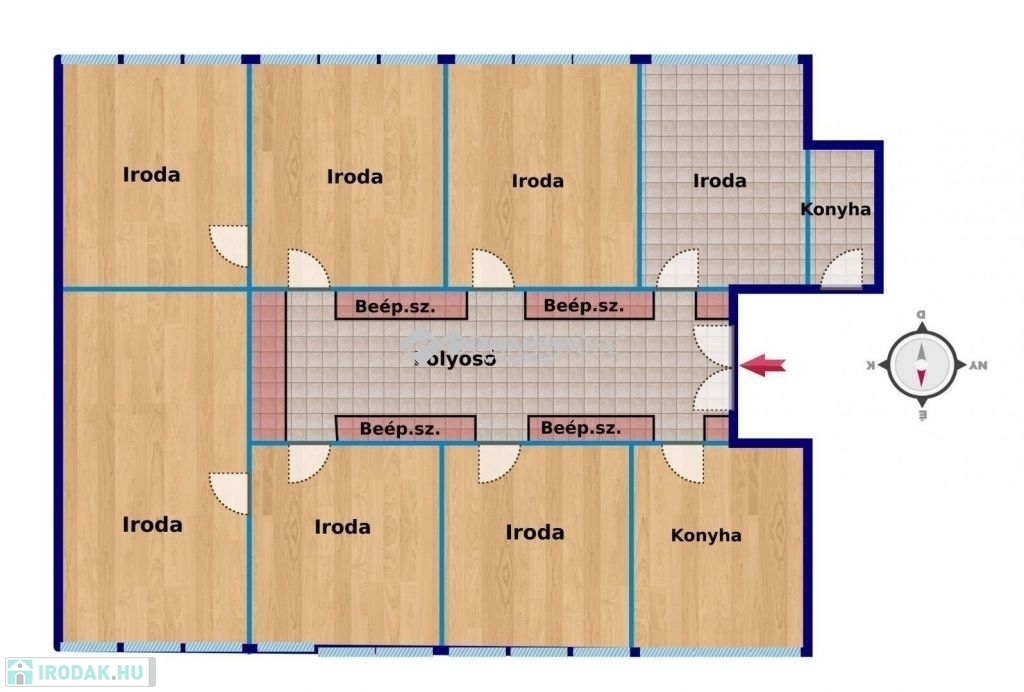 Jelenleg 6 db különféle méretű iroda bérelhető 20,3 és 29,3 nm. közötti méretekben. Minden helyiség klimatizált, külön bejáratú, illetve tartozik hozzá közöshasználatú konyha és mosdó.