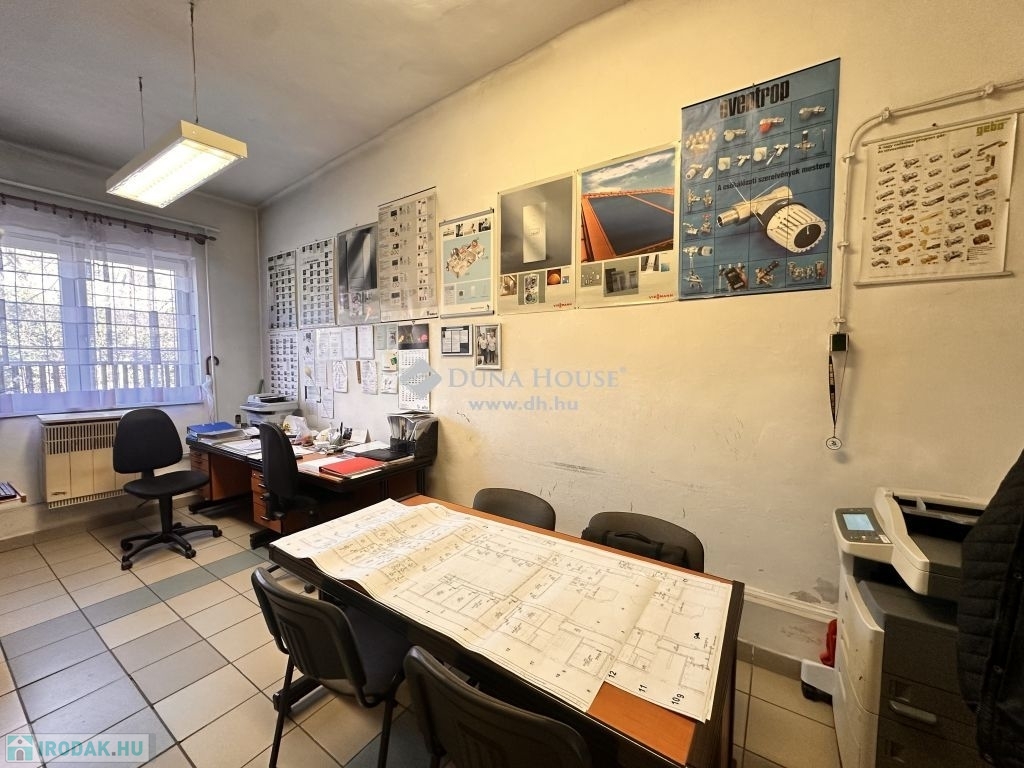 A telephely működéséhez szükséges helyiségek is adottak itt helyben : -2 különálló iroda, -konyha, -zuhanyzó, -WC, -belső irattároló, -külső raktár, garázs, autóbeállók stb.